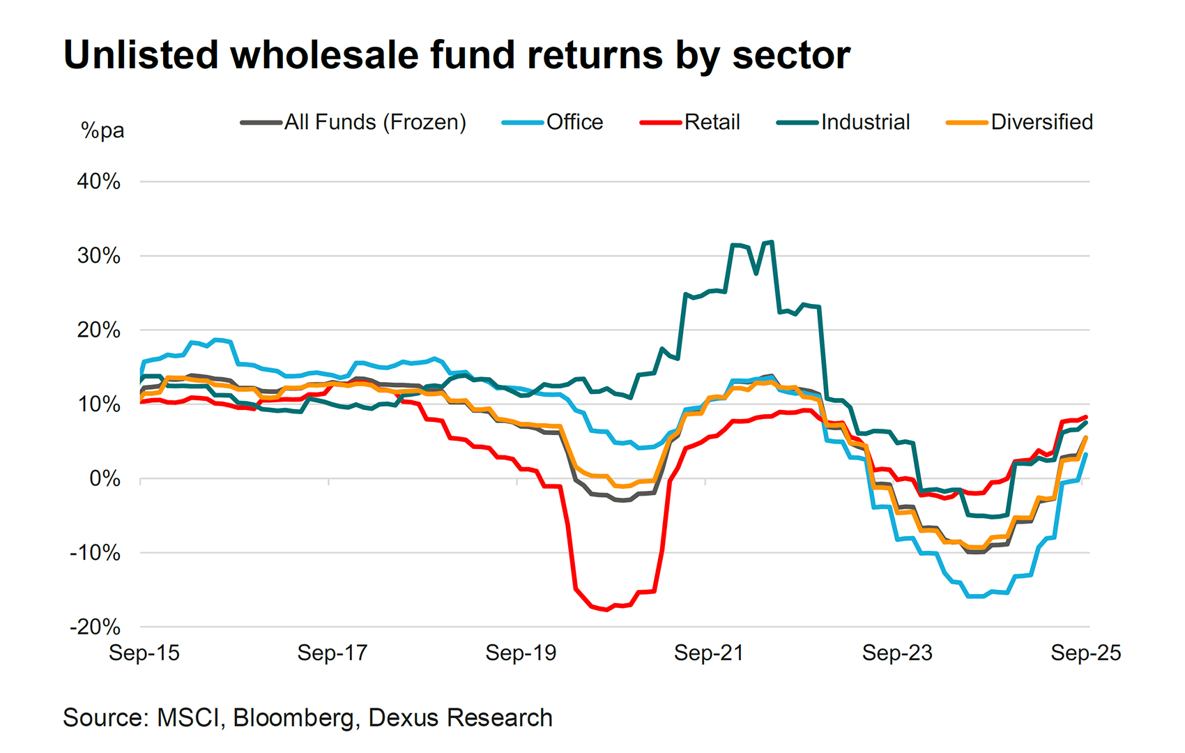 This broadening lift matters. It shows the recovery is not confined to logistics or convenience retail; momentum is spreading across the capital stack, supported by improving income fundamentals and stabilising valuations.